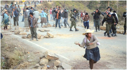 Cocaleros de Yungas de Vandiola (Cochabamba, Bolivia) fueron agredidos al impedir que policías de la Fuerza de Tarea Conjunta (FTC)  instalen un campamento.