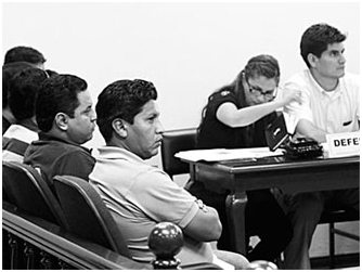 Imputados. Los policías de la Interpol en plena audiencia cautelar, la tarde de ayer, ante la jueza Iris Justiniano.