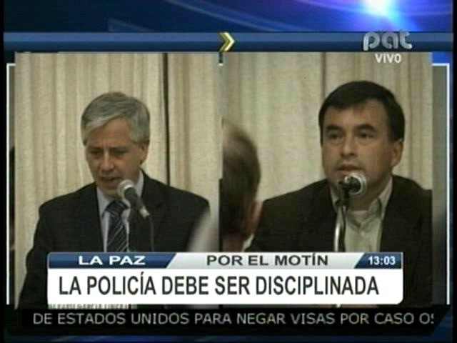 La Paz.- En la presentación de esta nueva investigación el vicepresidente, Álvaro García Linera, hizo varios comentarios, entre ellos que la nueva Policía tiene que ser estrictamente disciplinada recordando el pasado motín policial.