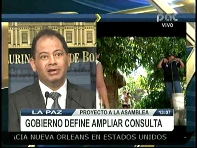 La Paz.- Esta mañana el ministro de Gobierno, Carlos Romero, ofreció una conferencia de prensa donde hizo conocer 2 anteproyectos de ley que serán enviados a la ALP para su consideración. El primer proyecto de ley vinculado a criterios sobre una acción de extinción del derecho propietario y el segundo ante la ampliación de la consulta en el Tipnis.