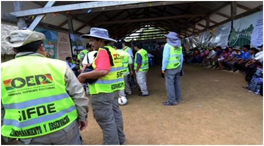 Brigadistas en una comunidad del TIPNIS se organizan para instalar la consulta.