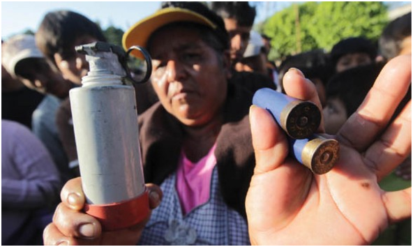 REPRESIÓN. Una mujer muestra casquillos y una granada de gas que presuntamente utilizó la policía.