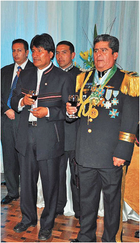 Acto. Morales junto al comandante de las FFAA, Tito Gandarillas. Foto: ABI