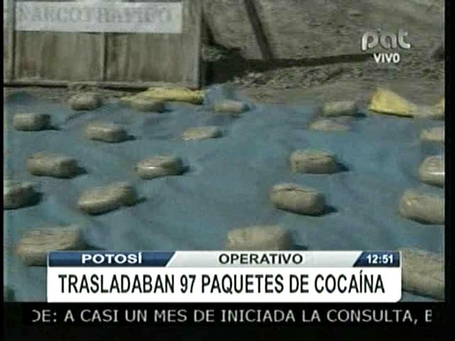 Potosí.- Una patrulla militar del Regimiento Loa procedió al secuestro de 102 kilogramos de cocaína, además del secuestro de dos vehículos, el primero una vagoneta y el segundo un taxi. El hecho ocurrió en la localidad de Llica, en el sudeste potosino. Cuatro personas fueron aprehendidas.
