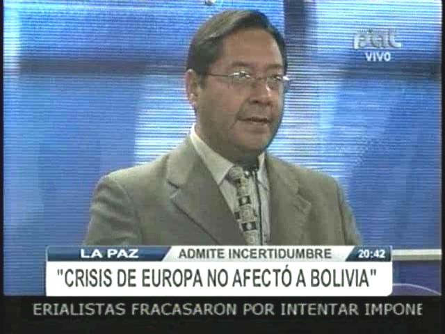La Paz.- El ministro de Economía, Luís Arce Catacora, asegura que si bien la crisis de Europa no afecta a Bolivia no se sabe si en un futuro tendría efecto, ya que lo único cierto en este tema es la incertidumbre