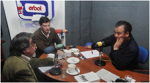 imageDe izquierda a derecha: Juan Carlos Salazar (ANF), Raúl Peñaranda (Página Siete) en el set de Erbol entrevistados por Andrés Gómez.