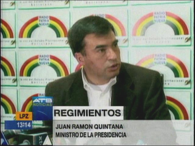 La Paz.- El ministro de la Presidencia, Juan Ramón Quintana, afirmó que el Regimiento escuela de protección de parques se instalará en la comunidades de Ichoa para jóvenes indígenas, asimismo recalcó que ese regimiento estará también conformado por las Fuerzas Armadas.