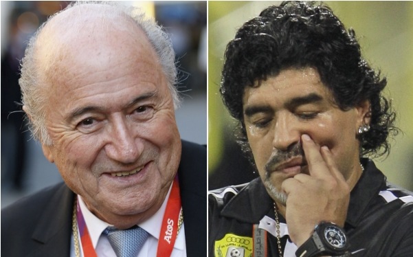“Maradona” critica a la FIFA y cuando viene a nuestra casa nos da un abrazo y me dice ‘grande, presidente, yo quiero trabajar para la FIFA’. Es un buen chico”, dijo Blatter en declaraciones al diario Marca de España.