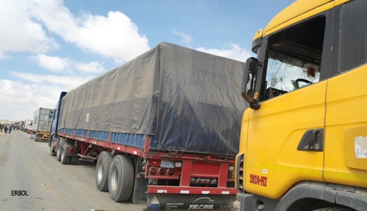 La Paz.- Cinco camiones del transporte pesado resultaron con los vidrios destrozados luego que cooperativistas mineros, que realizan un bloqueo en la zona de la Apacheta, atacaron a los choferes de los motorizados por no dejar pasar a comerciantes y alimentos para su provisión.