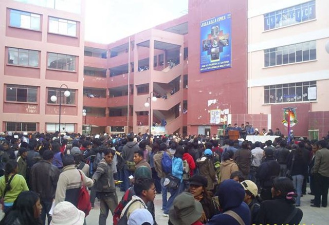 El Alto.- “30 mil estudiantes, más de 2 mil docentes y administrativos el día martes nos estaremos manifestando frente a la corrupción, al acoso sexual, al acoso laboral”, señaló uno de los dirigentes de los estudiantes.