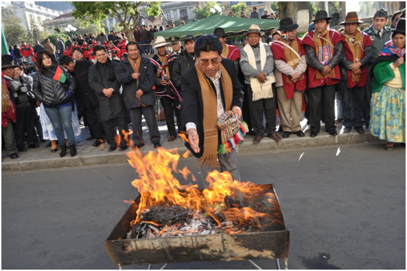 El Jefe de Estado recordó que en una ocasión, en el departamento de Oruro, en una misa de la Iglesia Católica un sacerdote había dicho que en Palacio de Gobierno estaba Satanás, por la realización de los ritos a la Pachamama, por lo que Morales presentó su queja a los jerarcas de la Iglesia.
