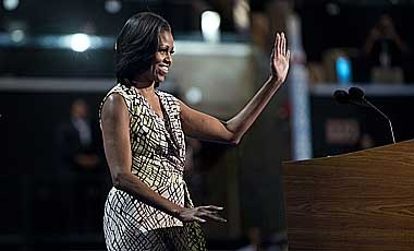 Michelle ha logrado en tan sólo cuatro años pasar de tener un discreto papel como primera dama a conquistar el corazón de los estadounidenses y entrar de lleno en la campaña de reelección del presidente demócrata. La carismática figura que dejó claro que aunque llegara a la Casa Blanca su familia continuaría siendo lo primero, se dirigirá a los miles de delegados reunidos en Charlotte (Carolina del Norte) esta noche durante la inauguración de la convención demócrata para dar esa otra visión de Barack, la de padre, amigo y esposo. Nadie conoce mejor que ella al Presidente, tanto en lo personal como en lo político, indicó Ben LaBolt, vocero de la campaña demócrata, que adelantó que dará "una perspectiva personal sobre el liderazgo del Presidente y su determinación en tiempos de desafíos para el país". Michelle Obama, que fue criticada en la campaña presidencial en 2008 por su aspecto de "mujer irascible" como dijo el comentarista conservador Bill O’Reilly, se ha ganado a la opinión pública manteniéndose al margen de polémicas y centrándose en causas como la lucha contra la obesidad.