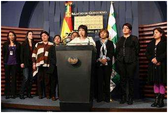 “Es la primera vez que en el Estado Plurinacional de Bolivia una mujer ejerce la Presidencia del país y este hecho en vez de ser resaltado, es cuestionado extrañamente por algunos ‘varones’ como el senador Luis Pedraza, Juan del Granado (jefe del MSM), el comunicador Eduardo Pérez Iribarne y otros asambleístas de oposición, quienes con ilógicos razonamientos supuestamente legales, que no tienen asidero constitucional, develan actitudes sexistas y discriminatorias que no admiten que una mujer esté al mando de nuestro Estado”, señala la denuncia.