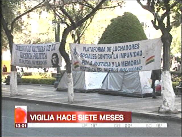 Tv noticias. Víctimas de la dictadura llevan 7 meses de vigilia, piden atención del gobierno, hoy bloquearon el Prado en La Paz.