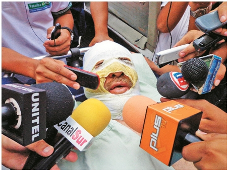 Ref. Fotografia: Locutor. Estado de Fernando Vidal antes de ser trasladado hasta la Clínica Santa María de Santa Cruz.