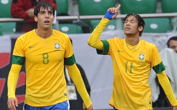 Neymar anotó dos goles y Kaká hizo otro, para que la selección brasileña doblegara con facilidad 4-0 a la selección japonesa en un partido amistoso disputado en Polonia. El astro del Santos convirtió un penal a los 25 minutos y anotó de un zurdazo a boca de gol a los 48, para hacer posible la goleada.