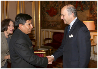 Terminada la visita a la UNESCO, el Canciller se trasladó al Quai d’Orsay, donde se encuentra el Ministerio de Relaciones Exteriores de Francia, donde fue recibido por su homólogo, el ministro, Laurent Fabius, con quien mantuvo una conversación versada principalmente sobre la reincorporación de Bolivia a la Convención de 1961, con la reserva a los dos artículos que penalizan el masticado de la hoja de coca.