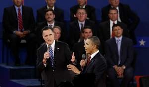Entre los dos. Seriamente Romney le preguntó a Obama si había mirado reportes de su pensión (para que aceptara que invertía dinero en empresas chinas) pero Obama lo miró y le espetó que no porque "no es tan grande como la suya".