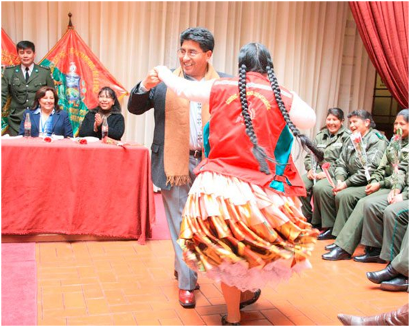 El “pasito Cocarico”; a partir de ahora los festejos y actos interculturales en la Gobernación de La Paz no serán iguales, pues cada invitado tendrá que igualar y si puede superar, el paso impuesto por la máxima autoridad departamental.