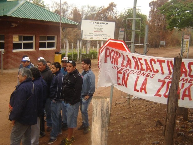 Dirigentes petroleros junto con ex trabajadores de YPF se congregaron frente a la planta compresora de Campo Durán, adonde llegan 12 millones de metros cúbicos de gas por día enviados desde Bolivia.
