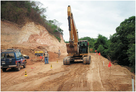 Construcción. Cuatro obreros realizan trabajos en el tramo caminero Zudáñez-Padilla (Chuquisaca).