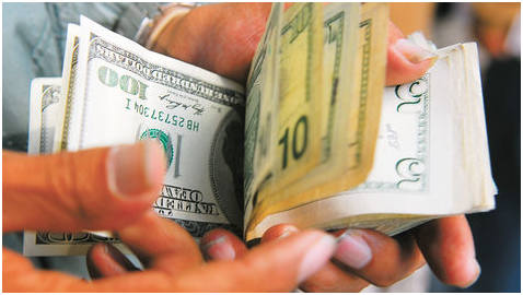 Dólares. En la imagen se observa a una persona mientras cuenta billetes de diverso corte.