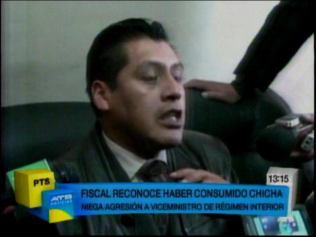 Potosí.- El fiscal de Distrito de Potosí, Sandro Fuertes, reconoce haber consumido tres vasos de chicha el pasado fin de semana durante su permanencia en Mallku Khota, pero que lo hizo fuera del horario de trabajo y tras haber cumplido la tarea para la cual se trasladó al lugar del conflicto. No obstante negó haber agredido verbalmente al viceministro de Régimen Interior.