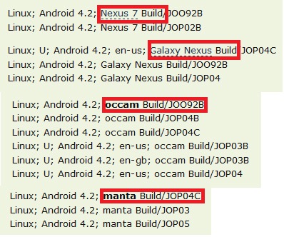 Cuatro dispositivos Además de la versión, a través del código que os facilitamos a través de la captura, se aprecian otros dos datos importantes. Y es que de esos cuatro modelos detectados con Key Lime Pie, dos de éstos coincidirían con un Galaxy Nexus y un Nexus 7. ¿Qué podemos extraer de esta información? Claramente que los dos gadgets de Google serán los primeros en actualizarse, puesto que la filtración indica que ya se estaría probando la versión, tal vez la definitiva, por miembros del equipo de Android.