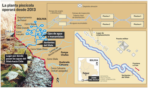 El presidente Evo Morales afirmó la pasada semana que no es ninguna “agresión ni provocación” que Bolivia defina proyectos para el aprovechamiento de las aguas del Silala. Anunció que respaldará al gobernador Félix Gonzales en la ejecución de este emprendimiento productivo de crianza de truchas, que demandará una inversión de más de Bs 409 millones, financiados por la Gobernación de Potosí. Los objetivos del proyecto son la generación de fuentes laborales y el incentivo del consumo de la carne de trucha.