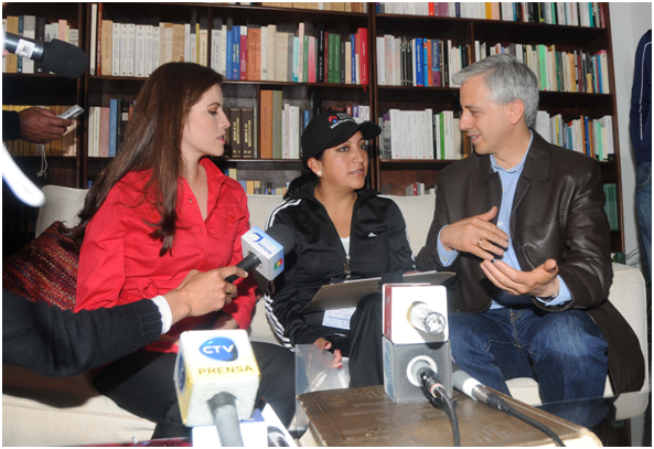 image Miércoles 21 de noviembre de 2012. El vicepresidente Álvaro García Linera junto a su esposa Claudia Fernández recibe a uno de los empadronadores del Instituto Nacional de Estadística para ser censados.(ABI)