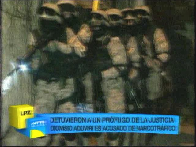 “En cumplimiento de un mandamiento de captura del señor Dionicio Aduviri Calle, el mismo está por delito de tráfico de sustancias controladas y tiene una sentencia de 7 años y él ha sido declarado prófugo de la justicia”, informa la autoridad policial.