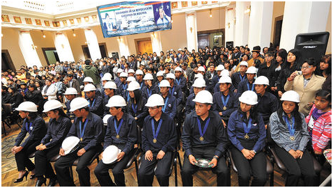 “Son nuevos ingenieros profesionales para la industrialización y le he pedido al ministro de Hidrocarburos, compañero (Juan José) Sosa, al presidente de Yacimientos (Carlos Villegas) y a ustedes que hay que seguir estudiando, aquí no termina, hay que darles todas las facilidades para que sigan especializándose para la industrialización que pedimos”, sostuvo el Jefe del Estado.