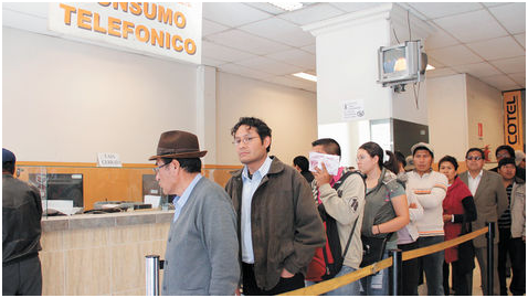 Servicio. Clientes de la Cooperativa de Teléfonos La Paz hacen fila para pagar el consumo telefónico.