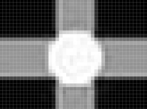 Pero en cuanto intentes mirarlos, estos desaparecerán, porque en realidad no están ahí. Puedes comprobarlo descargándote la imagen y haciendo zoom en cualquiera de ellos, aunque para ahorrarte el trabajo, esto es lo que verás: