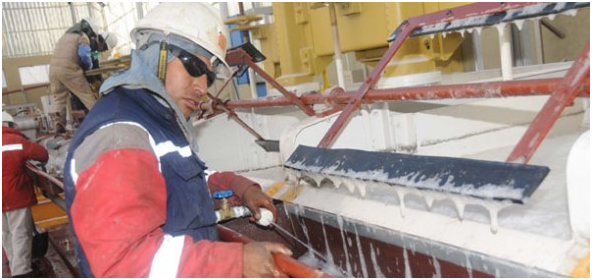 200 toneladas de cloruro de potasio por mes produce la planta semiindustrial de cloruro de potasio.