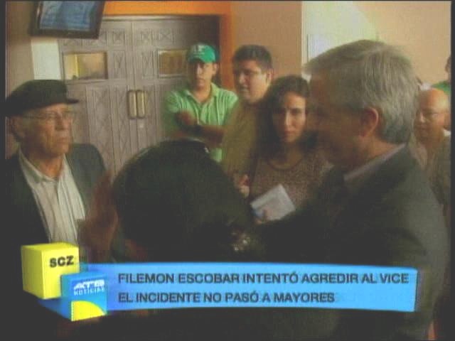 Santa Cruz.- Cuando el vicepresidente del Estado, Álvaro García Linera, llegaba al cementerio de “Las Misiones” para dar el último adiós a Simón Reyes el ex dirigente y ex fundador del MAS Filemón Escobar intentó agredirlo, lo amenazó con darle un sopapo, el vicepresidente extendió su mano para evitar la agresión. El incidente no pasó a mayores.