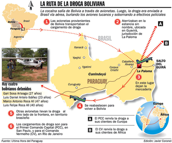 Roca, que se hacía llamar ‘Presidente’, según los informes policiales de Paraguay, era el líder de una red de traficantes de cocaína que ingresaban el alcaloide a tierra guaraní, para luego comercializarlo en mercados brasileños, europeos y africanos.
