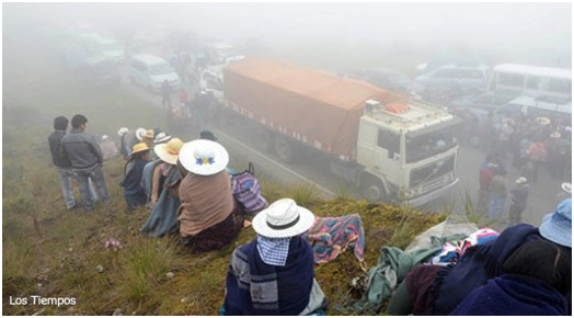 Según el reporte de uno de los corresponsales de Erbol, un contingente policial de unos 50 efectivos intentó despejar la vía con el uso de gases lacrimógenos y los pobladores, que al inicio estaban bloqueando en un número reducido a la altura de la represa de Corani, se reagruparon indignados en Colomi y se enfrentaron con los uniformados lanzando una lluvia de piedras.