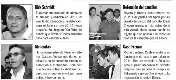 Otros, como el exviceministro de Régimen Interior, Gustavo Torrico, implicado en un presunto intento de extorsión a menonita en Santa Cruz, y la diputada opositora Marcela Revollo, denunciaron que sus procesos fueron dilatados o manipulados (ver recuadro de la página 4).