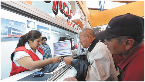 Venta. Un adulto mayor compra ayer un pasaje en la terminal paceña.