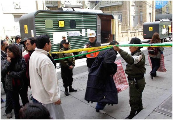 Eran las 08.17 y 16 personas formaban fila en la calle Batallón Colorados esperando su turno para ingresar al edificio y rescatar ropa, documentos, computadoras portátiles, televisores pequeños, útiles de limpieza y aseo personal, o alimentos del congelador. Caía una tenue lluvia, mientras en la calle Tiwanaku se formaba otra fila.