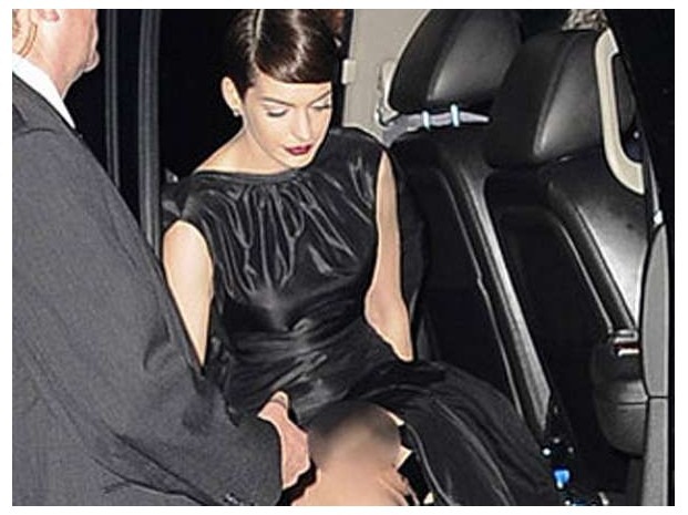 Lamentablemente la bella Anne Hathaway fue víctima de uno de los errores de vestuario más temidos…
