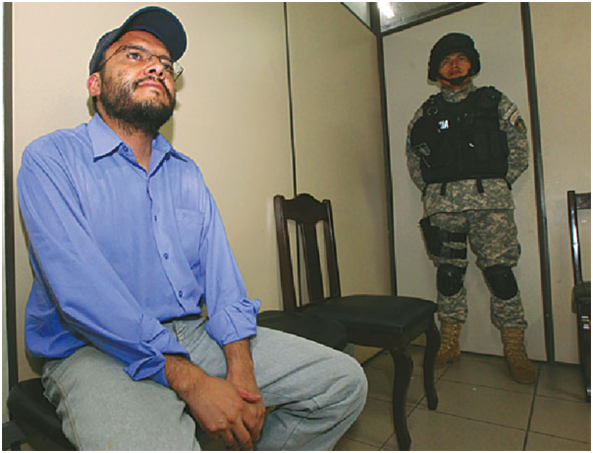 Boris Villegas antes de ingresar a la sala del juez que finalmente declaró su encarcelamiento.