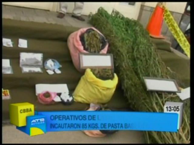 Cochabamba.- Entre el 4 y 9 de diciembre la fuerza antidroga incautó 85 kilos de pasta base de cocaína, los operativos de control en el Cercado y otras provincias también detectaron el microtráfico de marihuana.