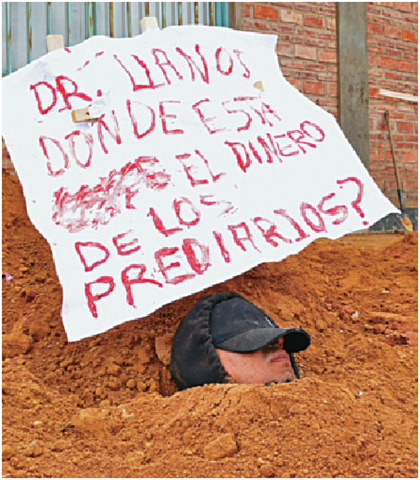 En El Abra, los reclusos cavaron fosas en el patio del penal y se enterraron por turnos, mientras que otros se extrajeron sangre para escribir carteles en los que exigían el pago del prediario o subvención. También se encuentran amotinados por esta causa los presos de las cárceles de San Sebastián, San Pablo y San Antonio, en el mismo departamento.