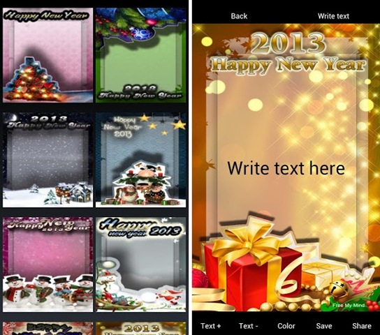 Los usuarios de Android que quieran una forma original de compartir alegría estas fiestas, tendrán sus deseos cumplidos con una aplicación festiva que crea tarjetas de año nuevo desde el móvil.