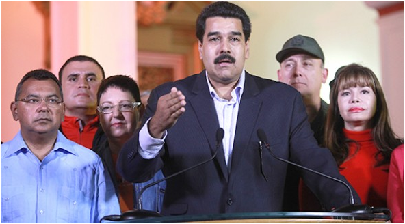 “Con sus declaraciones infames en este momento tan delicado para Venezuela, el Presidente de EEUU asume la responsabilidad de conducir las relaciones bilaterales hacia un deterioro mayor dejando en evidencia la continuidad de su política de agresión e irrespeto hacia nuestro país”, dijo la cancillería venezolana en un comunicado leído desde la casa de gobierno por el ministro de Información, Ernesto Villegas.