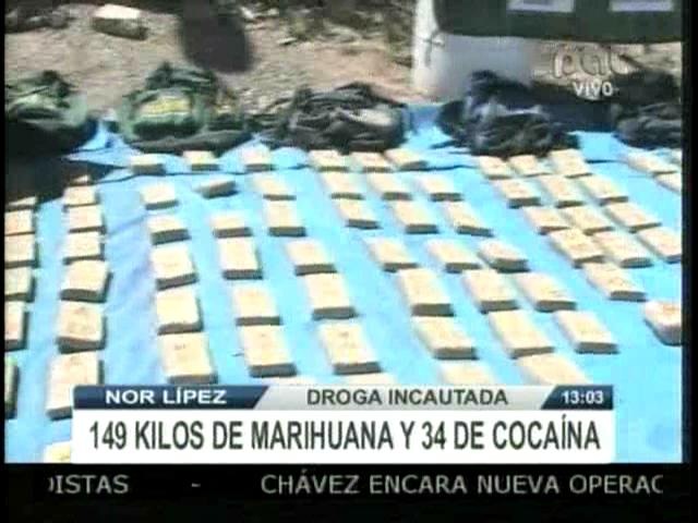 “Se ha logrado interceptar cuatro vehículos los mismos que estaban transportando sustancias controladas hacia la republica de Chile, se ha logrado la aprehensión de ocho personas, asimismo se ha logrado el secuestro de cuatro vehículos, tres camionetas y una vagoneta, y se ha procedido al secuestro de 149 kilos con 100 gramos de marihuana y 34 kilos con 200 gramos de cocaína. Las personas aprehendidas ya se encuentran con detención preventiva en el penal de Cantumarca”. (PAT)