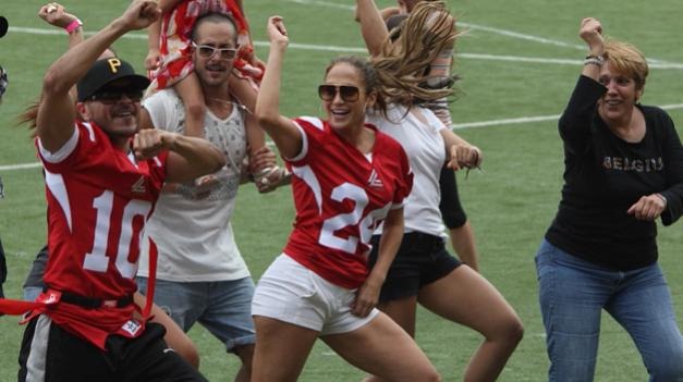 JLo asistió junto a su novio Casper Smart a un partido a beneficio de fútbol americano, en dónde al escuchar la música del "Gangnam Style" no pudo contenerse y realizó el famoso "baile del caballo".