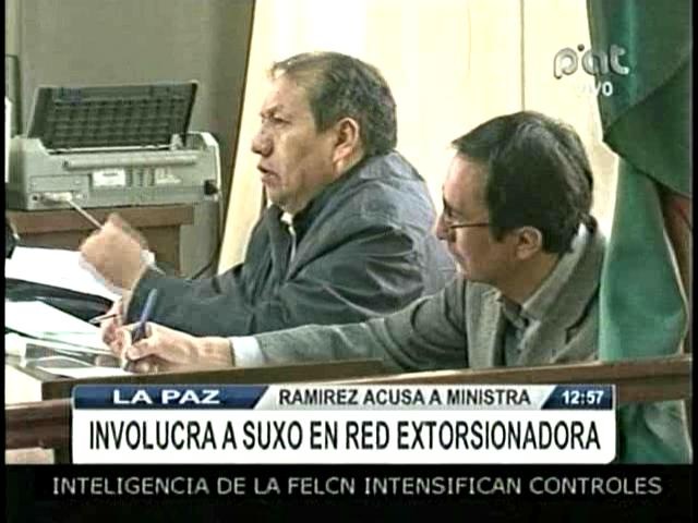 “¿Porque llega Isabelino Gómez a Santa Cruz como fiscal de Distrito?, después de haber acusado a Santos Ramírez, son varios premios, un primer premio es (a Isabelino Gómez fiscal de Distrito de Santa Cruz, acusan a Santos Ramírez Edward Mollinedo asistente de Isabelino Gómez en el departamento de Santa Cruz. El señor César Romano abogado en la Procuraduría General de la Nación. ¿Y dónde está ahora el señor Edward Mollinedo?, ha trabajado con la ministra de Transparencia, yo quiero decirle de manera directa a la señora Nardi Suxo: usted dijo que luchaba contra la corrupción y hoy por qué no dice nada, ¿se olvidó que su Ministerio es de Lucha Contra la Corrupción? Resulta que ella ha traficado conjuntamente estos extorsionadores”. (ATB)